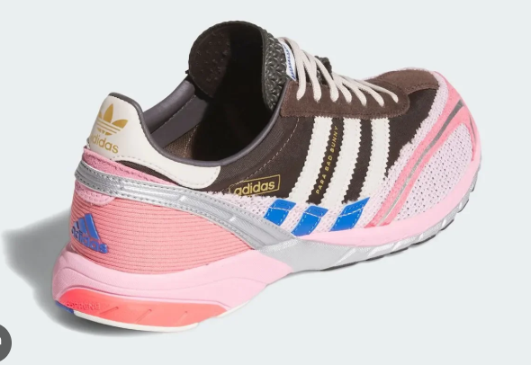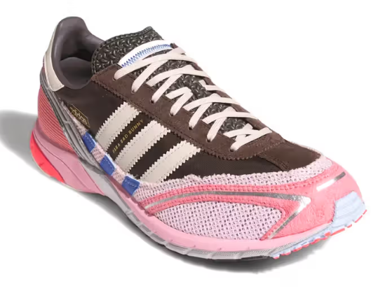 La struttura della scarpa è un patchwork intenzionale: la tomaia rimanda al classico modello SL 72 degli anni ’70 — in particolare per la leggerezza del nylon che diede il nome “SL” (super light) — mentre la suola proviene dall’innovativo chassis Adizero moderno, per coniugare heritage e performance.