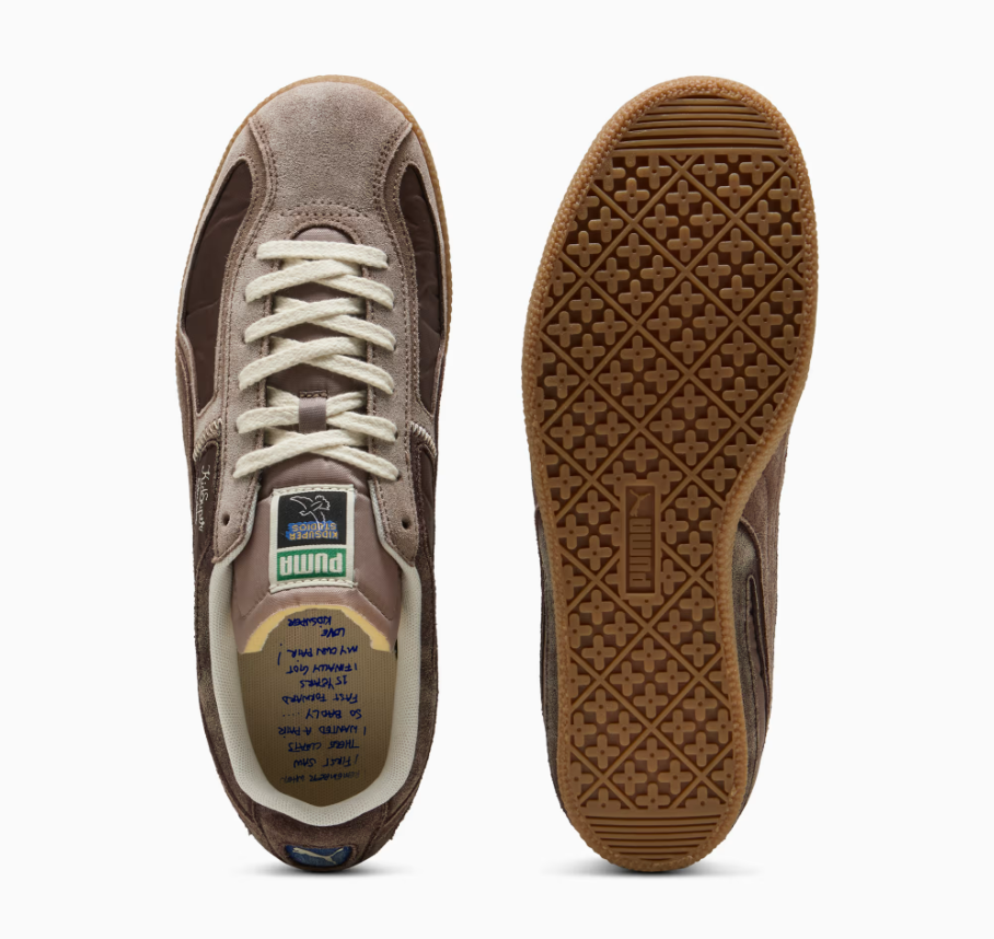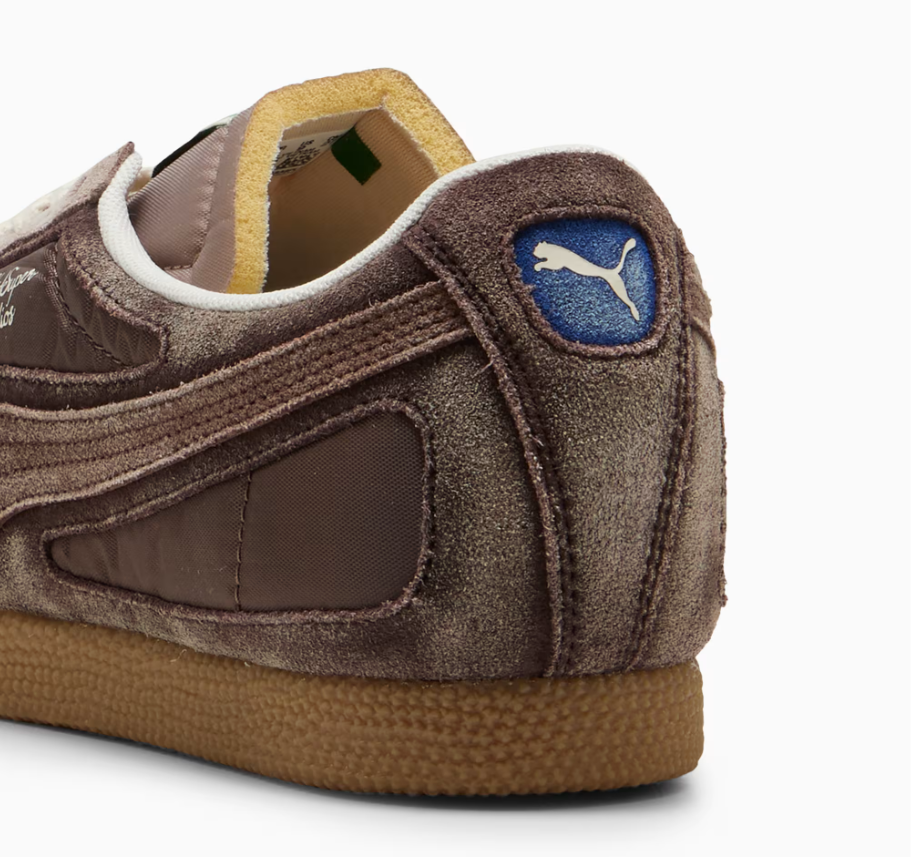 I loghi compaiono su lati e linguetta, mentre la suola è leggermente rialzata rispetto alle linee Puma tradizionali. Le tonalità spaziano dal marrone “espresso” a sfumature rosate, con accenti acquerellati che donano profondità al design. Le cuciture a contrasto e l’usura simulata completano l’effetto vintage-modern.