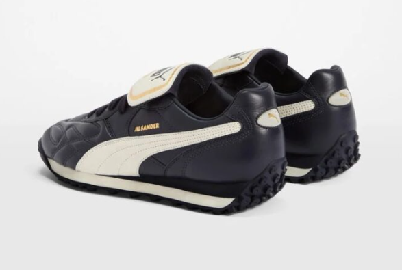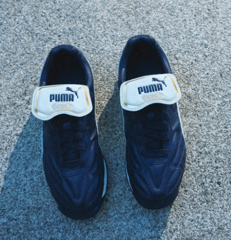 Oggi Jil Sander e Puma rilanciano la silhouette con il nome King Avanti, incarnando ancora l’equilibrio tra rigore sartoriale e funzionalità sportiva. Il modello è realizzato in pelle premium, in un’elegante colorazione blu navy con dettagli in bianco caldo, mentre il logo Jil Sander appare in dorato, volendo enfatizzare l’aspetto luxury.