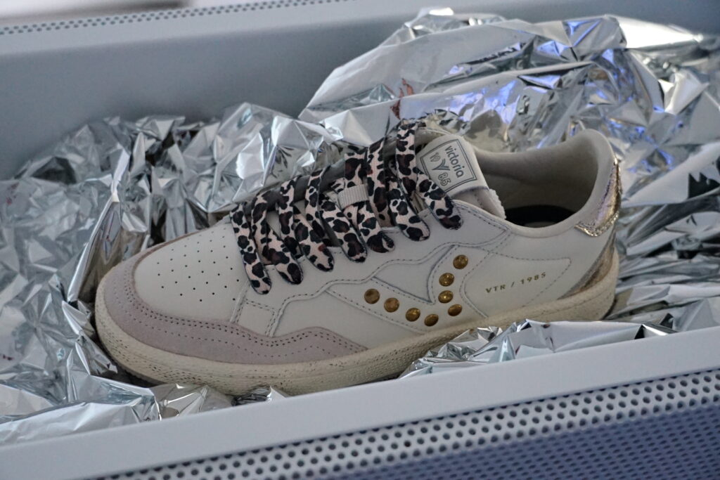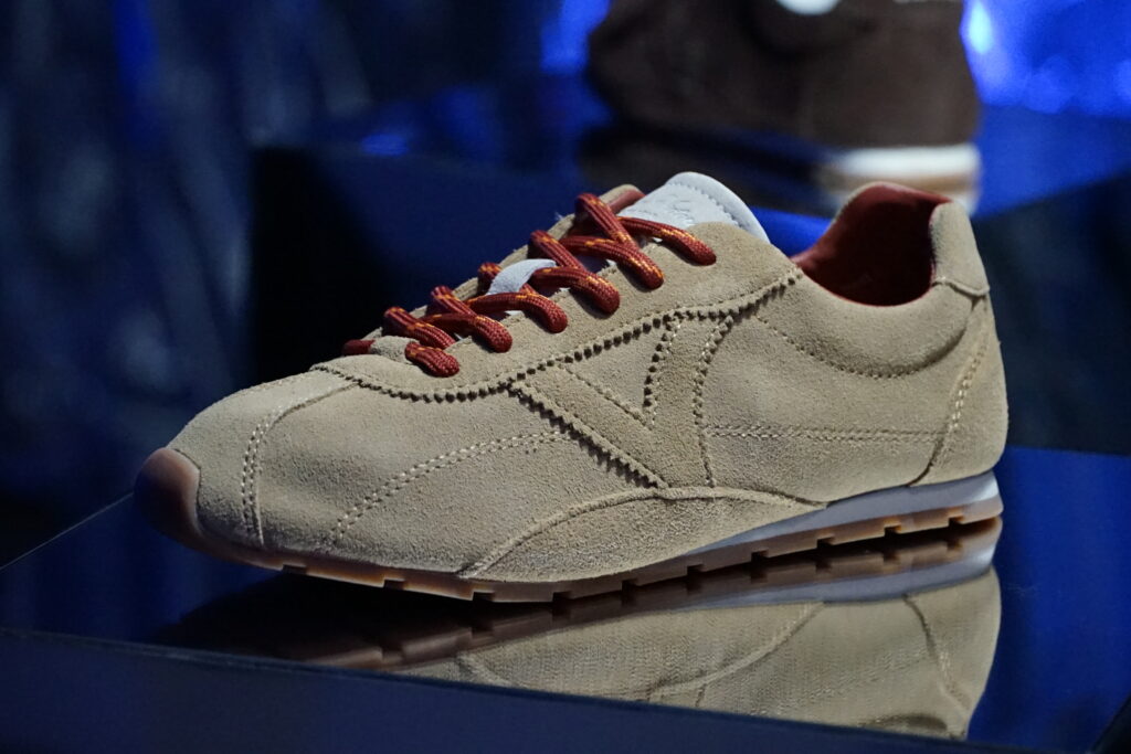 La collezione è stata protagonista assoluta: sneakers dai colori glaciali, inserti in pelliccia sintetica, dettagli animalier e lacci personalizzati, come quelli leopardati o intrecciati in stile climbing rope. Modelli come Aster, Saturno, Berlín e Barefoot si distinguevano per il mix di comfort tecnico e personalità urbana.