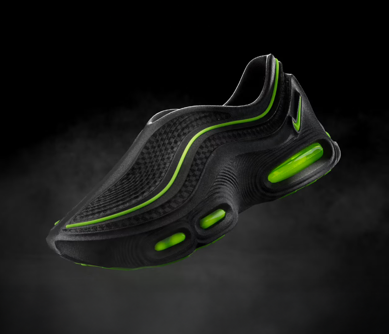 A prima vista, la silhouette conserva la struttura iconica della Air Max 95, con le sue onde laterali ispirate all’anatomia umana. Ma basta uno sguardo più attento per notare la trasformazione: la tomaia è completamente ripensata grazie a una stampa 3D a un solo pezzo, che elimina cuciture e materiali superflui, creando un effetto scultoreo e futuristico.