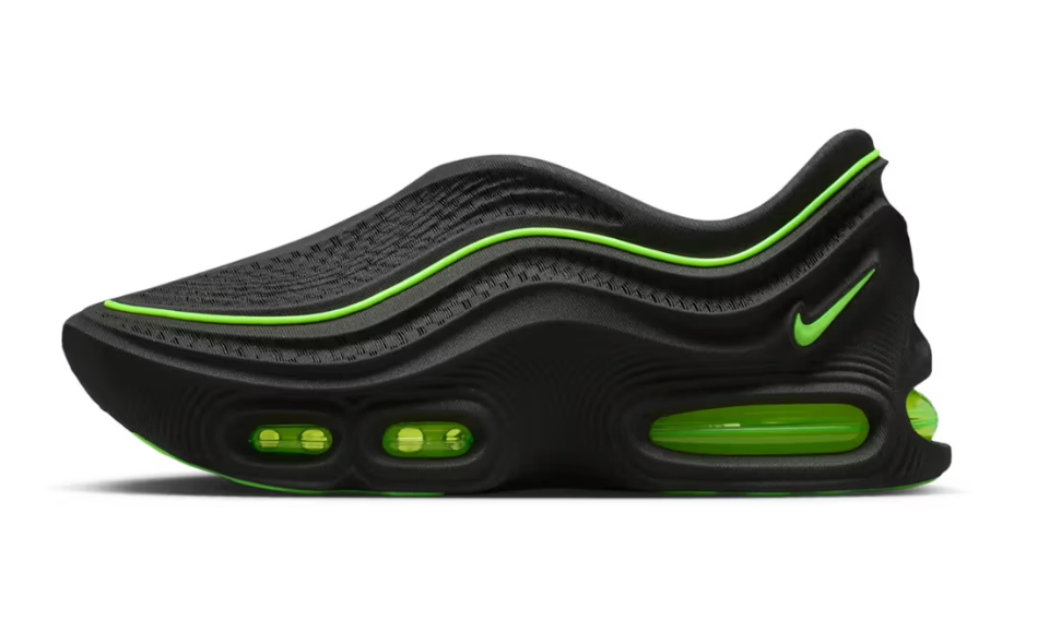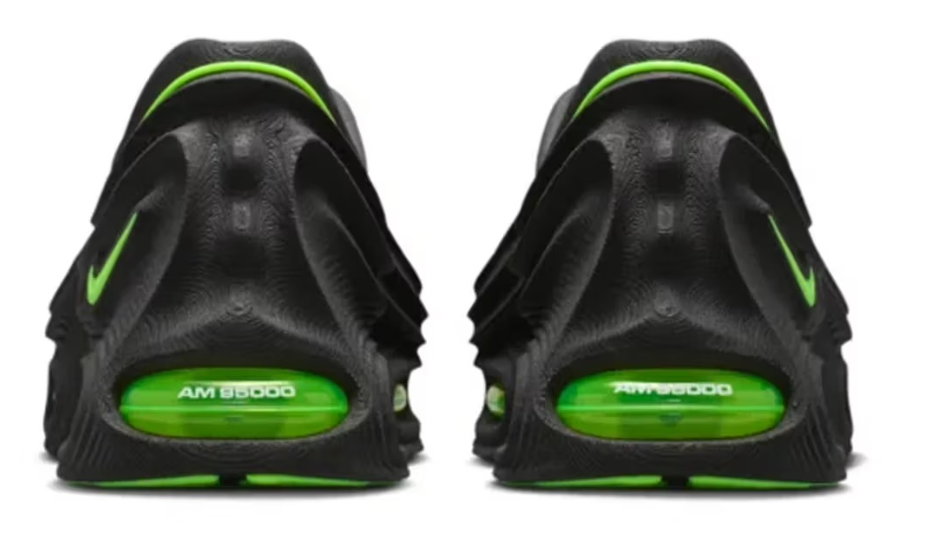 La suola mantiene la doppia unità Air — una più grande al tallone e una più compatta all’avampiede — ma integrata in un corpo stampato in 3D che garantisce leggerezza, comfort e resistenza. Il colore di debutto, nero con dettagli “Volt”, è un chiaro richiamo alla palette originale del ’95, reinterpretata con un look più tecnico e cyberpunk.