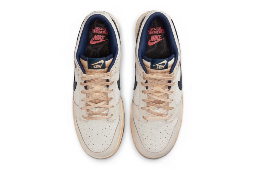 Con l’arrivo della quinta stagione di “Stranger Things”, Nike presenta una nuova collaborazione dedicata alla silhouette Dunk Low, capace di unire l’estetica vintage del modello e l’atmosfera sovrannaturale della serie. Il pack comprende due colorway distintive: “Phantom/Midnight Navy” e “Black/Speed Red–Varsity Red–Anthracite”. I codici stile sono IH6766-001 e IH6766-002.