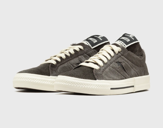 Rick Owens torna a collaborare con Converse, portando la sua estetica dark e architettonica su una delle silhouette più iconiche: la One Star Pro. Il risultato? Un pack audace e materico coperto interamente in pony hair, con due colorway distinte che incarnano pienamente l’anima DRKSHDW dello stilista.