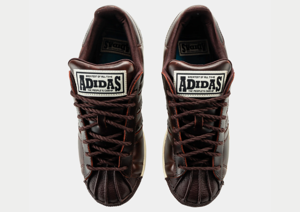 La adidas Superstar non ha bisogno di presentazioni: nata nei campi di basket alla fine degli anni ’60, con il suo celebre “shell toe” in gomma ha attraversato decenni diventando simbolo di streetwear, hip-hop e cultura urbana. In questo pack, la silhouette mantiene intatta la sua identità tecnica e storica, ma si carica di una narrativa in più grazie all’influenza di Muhammad Ali e alla cura di Shoe Palace, retailer noto per mettere spesso in dialogo sport, arte e comunità.