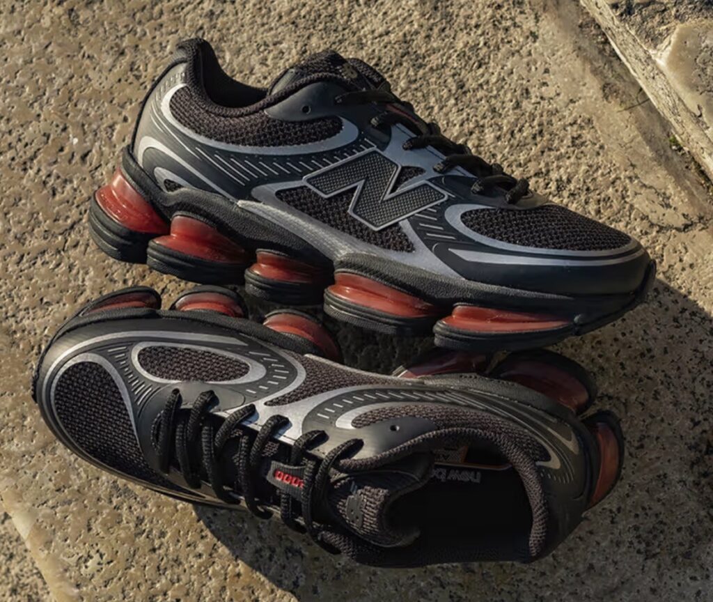 Il primo colorway è “Black/Red”: upper in nero con linee argentate che introducono movimento e profondità visiva, affiancate da accenti rossi sull’ammortizzazione che richiamano l’energia della recente collezione “Year of the Horse” di New Balance. Una scarpa che non ha bisogno di alzare la voce per essere notata.