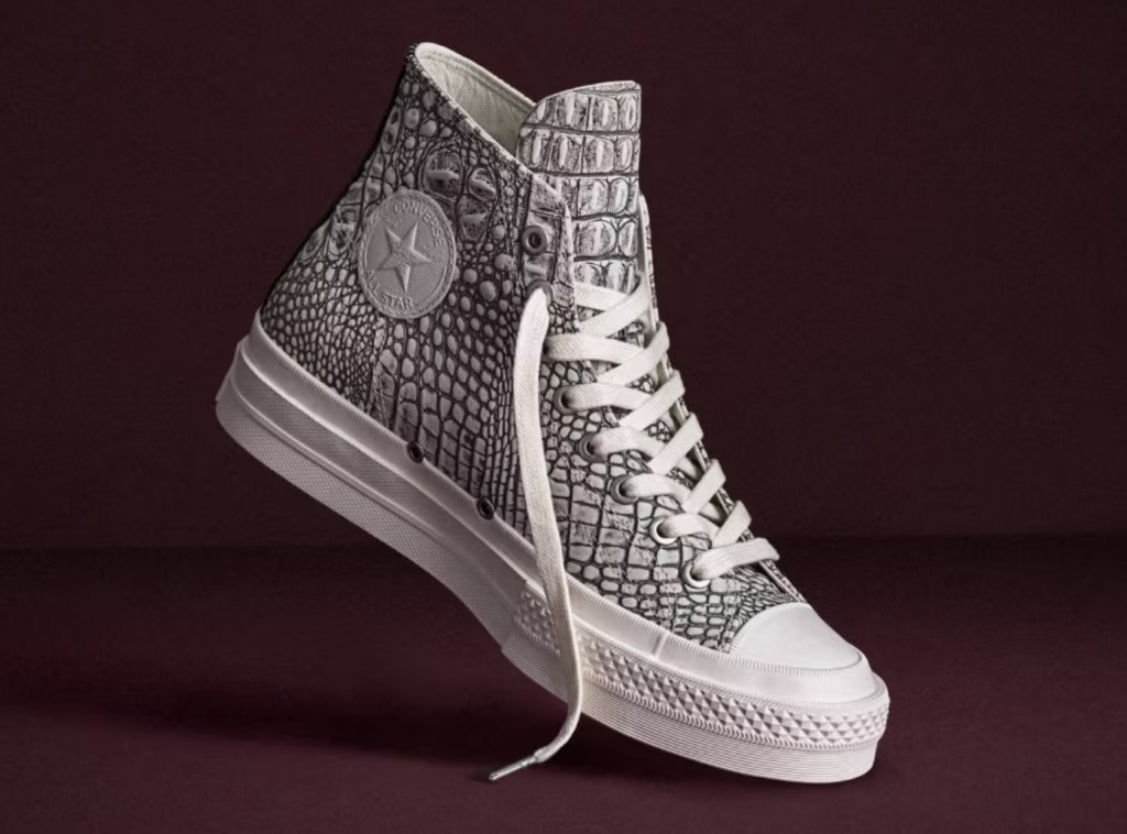 La Converse First String Chuck Taylor Spring 2026 è una scarpa per chi conosce già la storia della Chuck Taylor e vuole possederne la versione più raffinata mai prodotta. Pelle nera soft-glow, snake print, croc embossed tre textures che portano il modello in un territorio che non gli era mai appartenuto, senza che la silhouette perda un grammo di riconoscibilità. Il prezzo di $250 è un atto di posizionamento preciso: questa non è la scarpa per tutti. È la Chuck Taylor per chi vuole qualcosa di diverso.