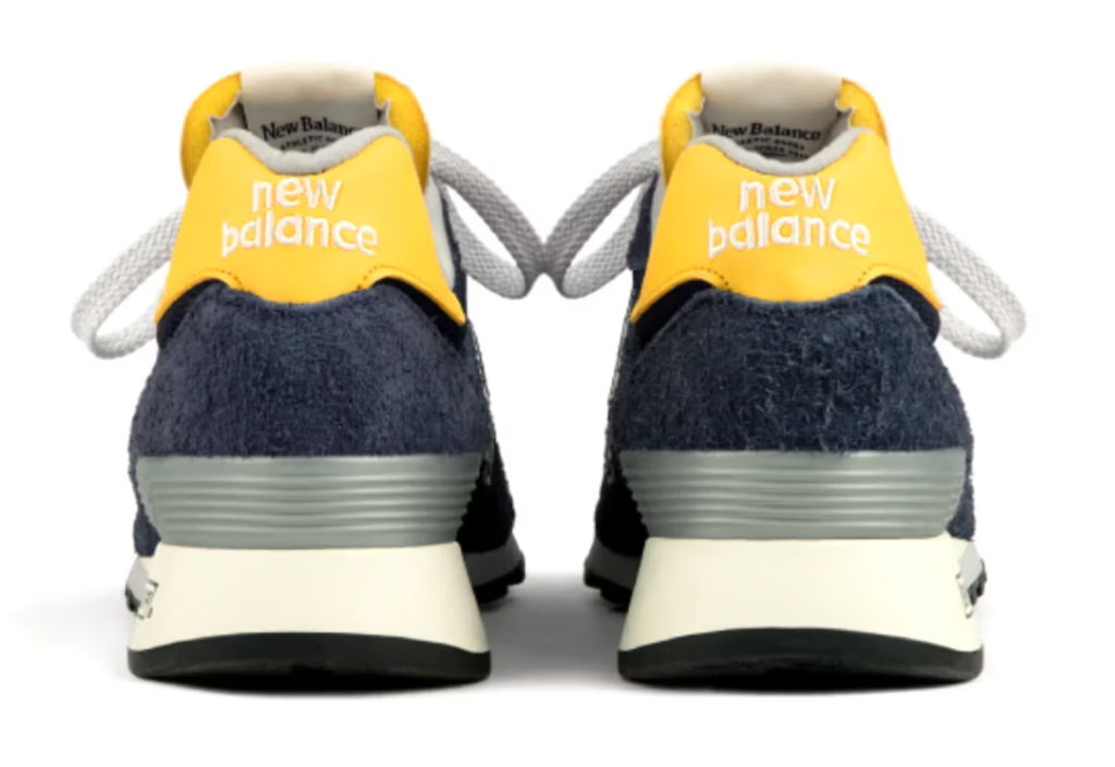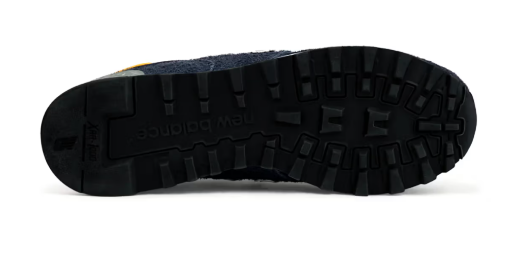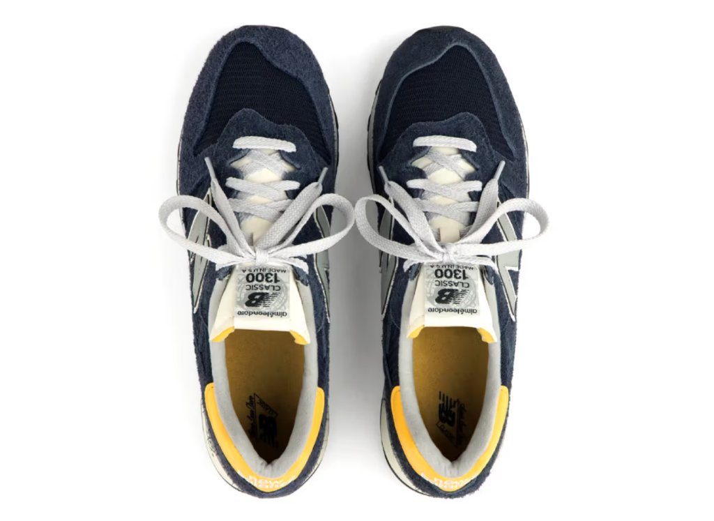L’unico elemento che rompe la monocromia è il heel tab in pelle gialla un accento preciso, dosato, che porta un calore visivo senza compromettere la sobrietà generale della scarpa. Il logo “N” laterale è in pelle premium, aggiungendo una presenza tridimensionale discreta sui profili mediale e laterale. Il branding New Balance è ricamato in bianco sul tallone, mentre i riferimenti ALD sono riservati al tongue tag brandizzato 1300 e alla soletta gialla dettagli per chi sa dove guardare.