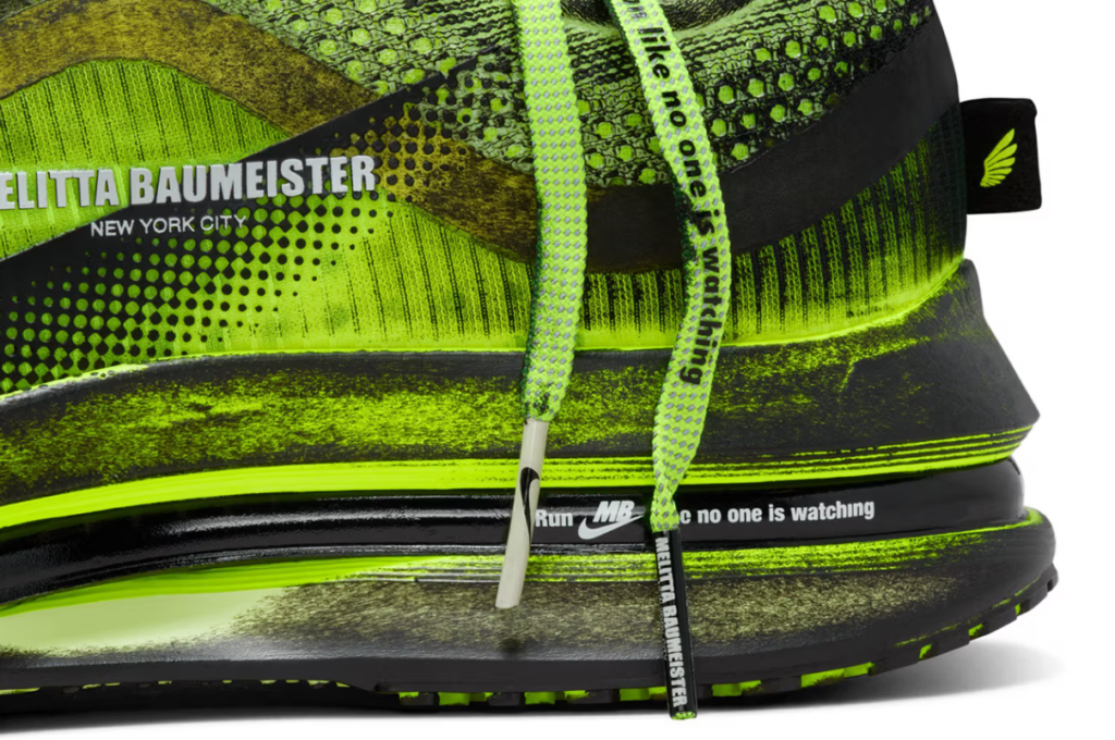 Melitta Baumeister x Nike è una delle collaborazioni più coerenti e concettualmente solide che Nike abbia portato avanti nell’ambito del running in questa stagione. Non è una scarpa per chi cerca performance pura è una scarpa per chi vuole che la performance abbia una forma, un colore, un gesto dietro. Dipinta a mano, unica per definizione, con un occhio sulla lingua che sbatte le palpebre e uno sotto la suola che guarda indietro. Il running come dichiarazione, non come disciplina.