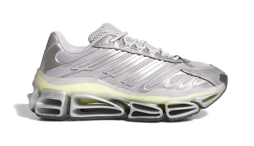 La Megaride AG “Silver Metallic” non arriva per caso nel 2026. Arriva in un momento in cui la scarpa chunky, futuristica e ad alto impatto visivo non è più una provocazione ma una categoria consolidata del mercato. L’Abzorb 2000 di New Balance è diventata uno dei modelli più discussi degli ultimi 12 mesi, il Jellyfish di Pharrell Williams ha vinto premi, la conversazione sulle super shoe ha reso familiare l’idea di midsole visibili e sovradimensionate. Adidas porta il Megaride in questo contesto con un vantaggio preciso: non è una silhouette nuova, è un pezzo di archivio che questo momento attendeva.