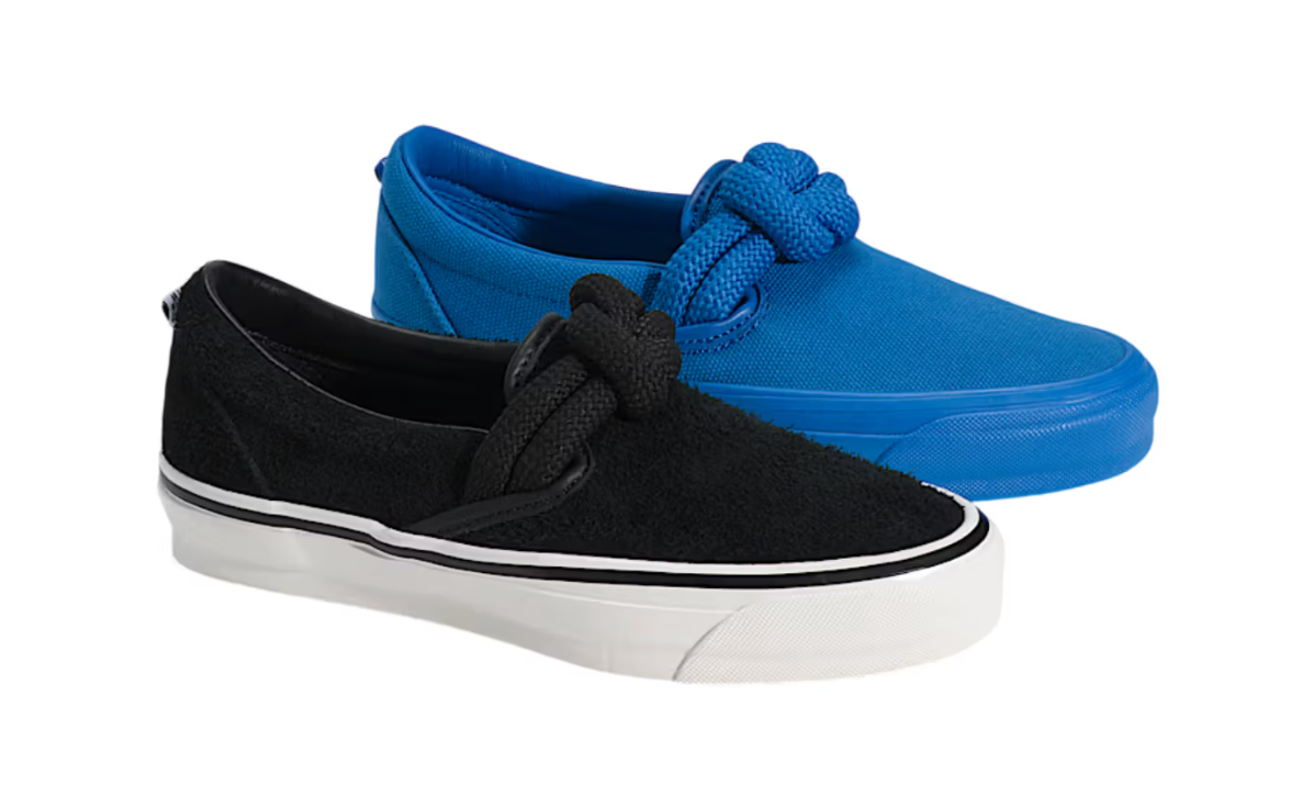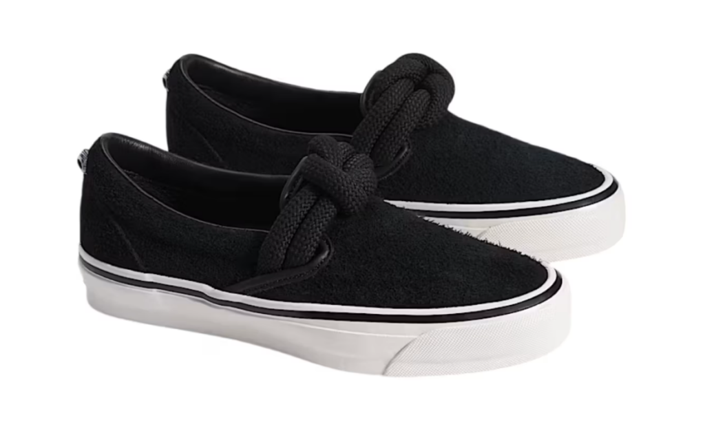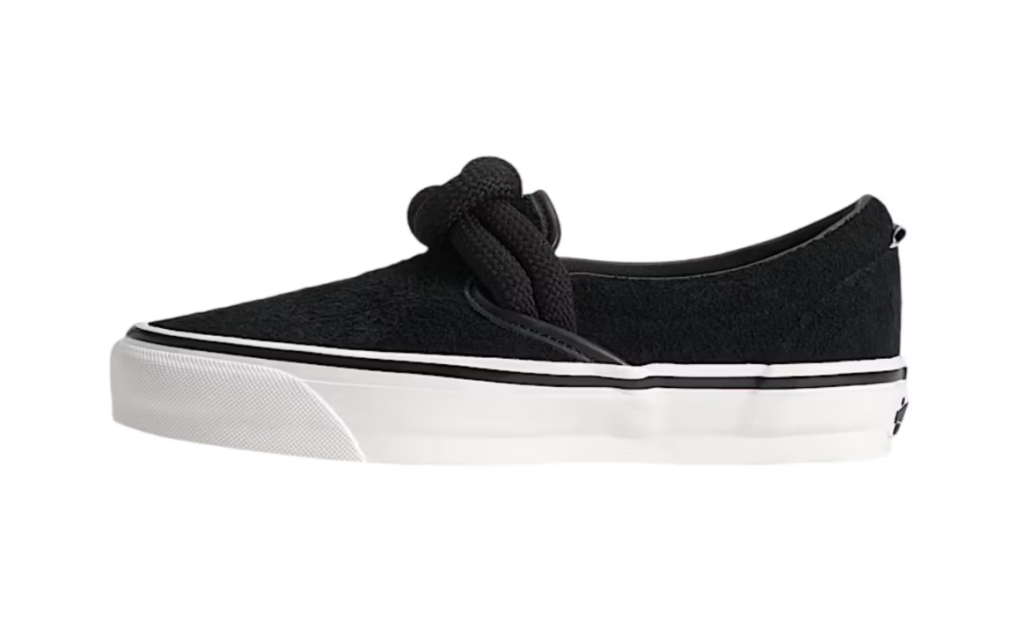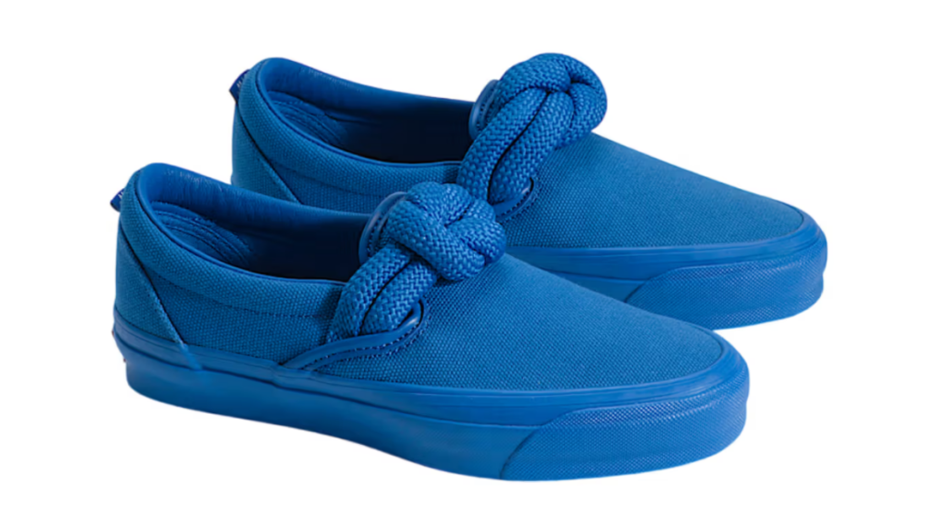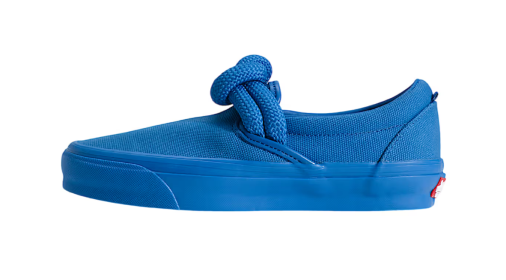 Il protagonista indiscusso di questa release è l’oversized rope knot posizionato direttamente sulla tomaia. Questo nodo nautico, dal forte impatto visivo, trasforma la struttura tradizionalmente piatta della Slip-On in un oggetto tridimensionale e dinamico. Si tratta di una scelta stilistica che strizza l’occhio al mondo del lusso e del design concettuale, iniettando una dose di “sculptural interest” in un modello che ha fatto della semplicità il suo punto di forza per quasi mezzo secolo.